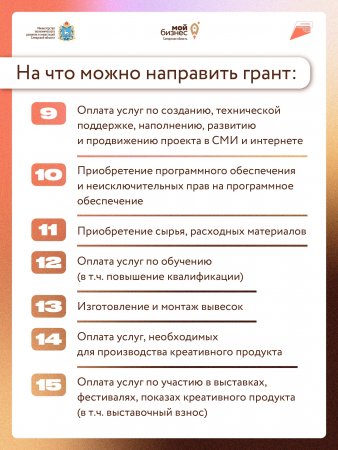Минэкономразвития Самарской области объявило о старте приема заявок на конкурс грантов для бизнеса в сфере креативных индустрий. Предприниматели, работающие в творческих сферах, могут получить грант до 750 тысяч рублей на развитие своих проектов.