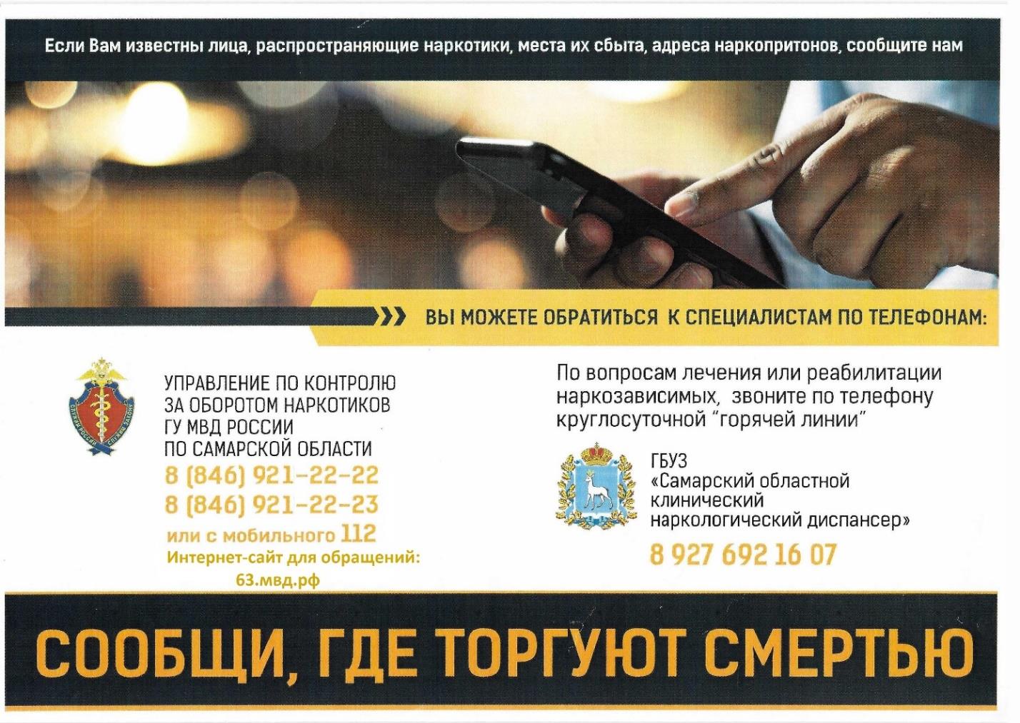 Если Вам известны лица, распространяющие наркотики, места их сбыта, адреса наркопритонов, сообщите нам