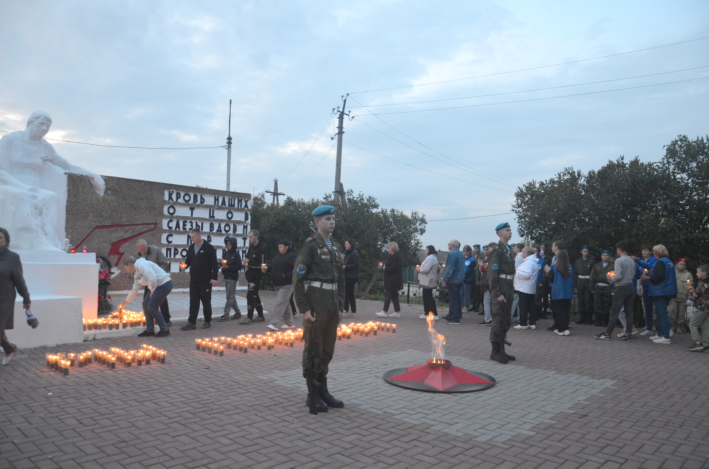 В утренней тишине у Вечного огня курсанты ВПК "Гвардия" застыли в почетном карауле. Участники акции установили свои зажженные свечи у подножия памятника. Состоялся митинг, посвященный трагической дате начала Великой Отечественной войны.