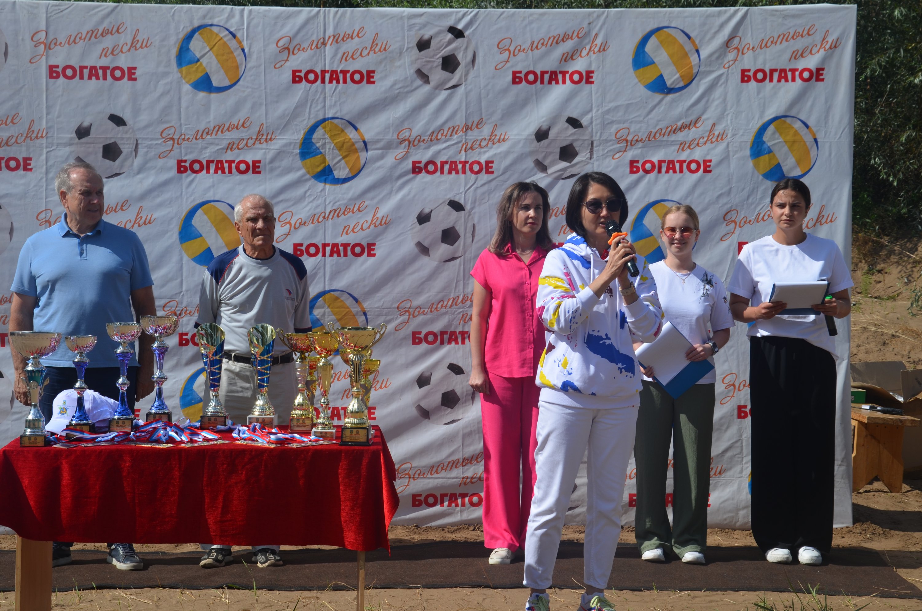 «Золотые пески - Богатое» 26 и 27 июля в селе Богатое, на спортивных площадках на берегу реки Самара и в районе озера Сызганское, расположенных в рекреационной зоне национального парка «Бузулукский бор», прошло одно из значимых спортивных событий Богатовского района и Самарской области - областной турнир по пляжному волейболу и пляжному футболу среди сельских команд «Золотые пески - Богатое» имени Н.А. Ахатчикова.