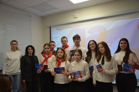 Каждый из ребят получил памятные подарки - обложку и значок. Эти сувениры призваны стать не просто аксессуарами, а напоминанием о принадлежности к большой и сильной стране, о миссии быть достойным представителем России.
