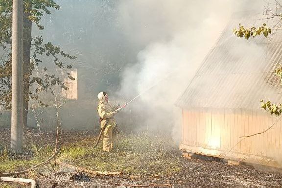 Открытым пламенем горели деревянные домики и лесная подстилка на неэксплуатируемой базе отдыха