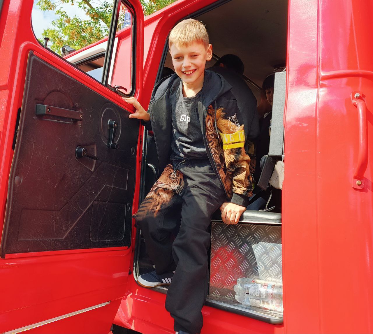 Ветеран противопожарной службы Андрей Гурьянов подробно рассказал школьникам о работе пожарного-спасателя, о пожарной автоцистерне, показал пожарно-техническое вооружение и аварийно-спасательное оборудование, продемонстрировал экипировку, которую ребята с удовольствием примерили и смогли на себе ощутить всю тяжесть боевой одежды огнеборца.