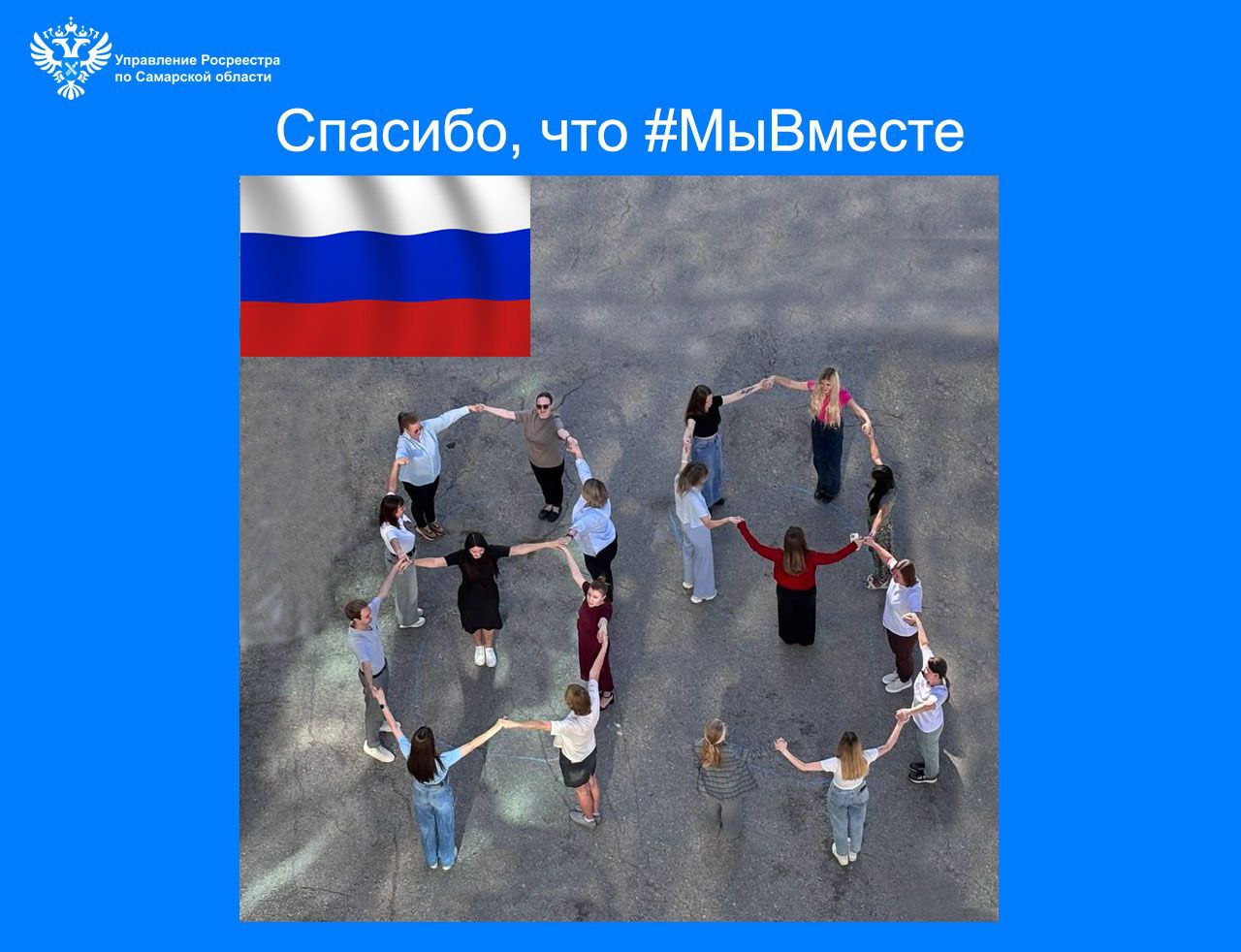 Молодежный совет самарского Росреестра организовал мероприятие в рамках Всероссийской акции «Спасибо, что #МыВместе», приуроченной к празднованию Дня воссоединения Донецкой и Луганской Народных Республик, а также Херсонской и Запорожской областей с Российской Федерацией.