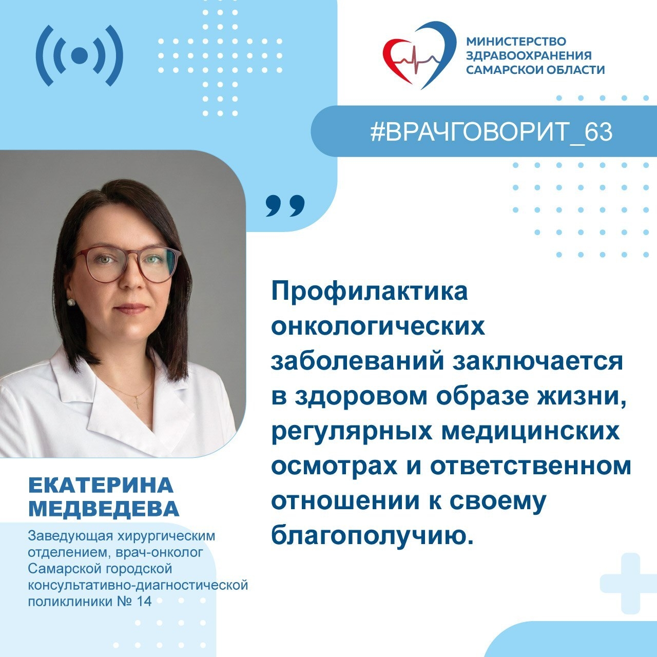 Заведующая хирургическим отделением, врач-онколог Самарской городской консультативно-диагностической поликлиники № 14 Екатерина Медведева: